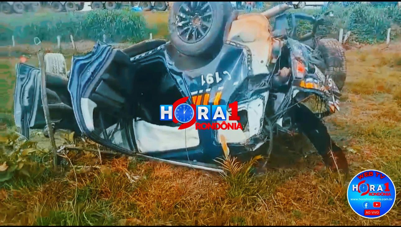 Nas imagens, é possível ver uma das viaturas completamente destruída após capotar diversas vezes às margens da rodovia. Partes do veículo ficaram espalhadas pelo local, evidenciando a força do impacto. A outra viatura também sofreu danos significativos.