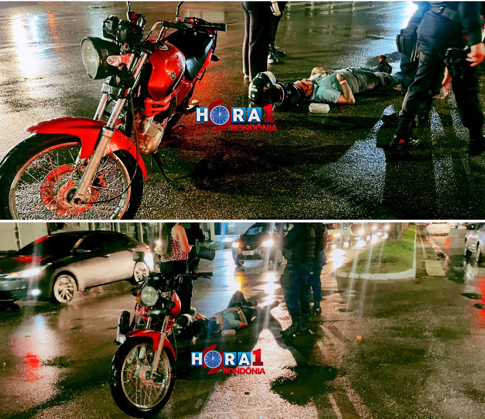 Motociclista fica ferido após carro furar sinal vermelho e fugir sem prestar socorro em Porto Velho