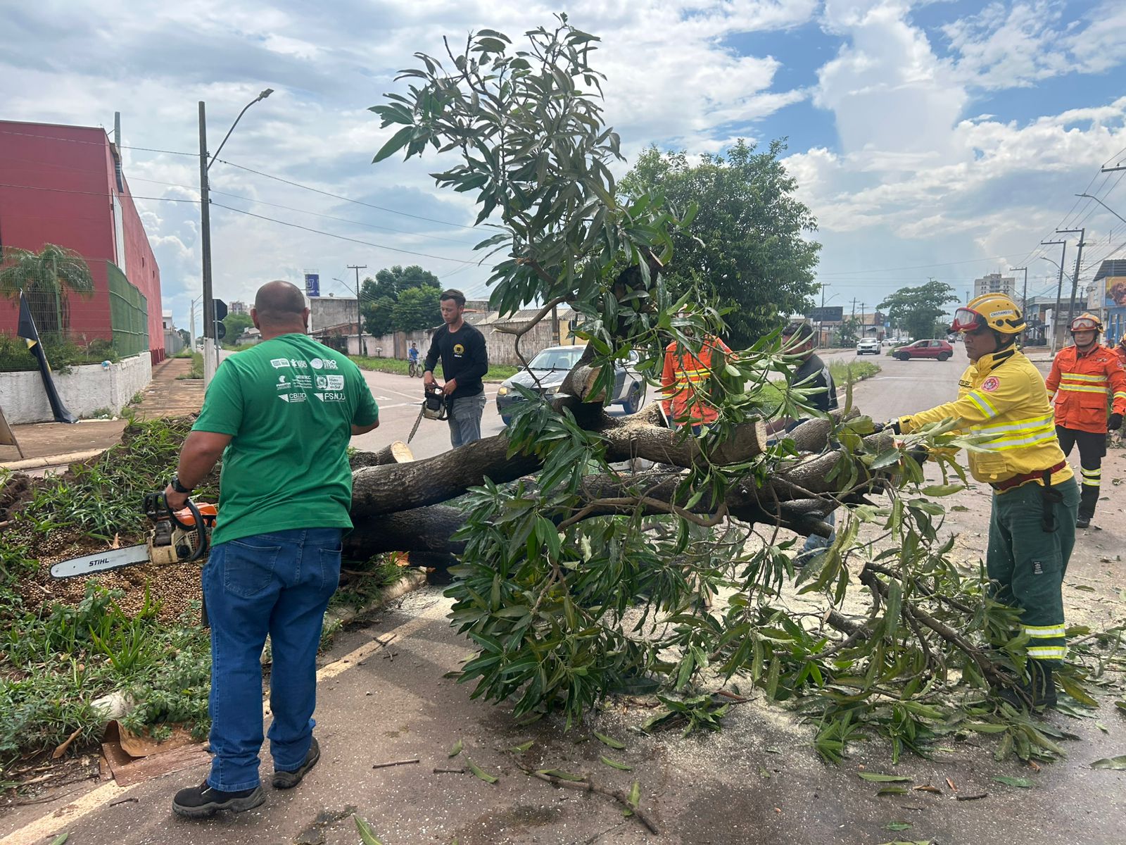 Após as fortes chuvas acompanhadas de ventos intensos que atingiram Porto Velho na segunda-feira (3), a Prefeitura por meio do Departamento de Proteção e Conservação Ambiental (DPCA), ligado à Secretaria Municipal de Meio Ambiente e Desenvolvimento Sustentável (Sema), realizou uma ação emergencial para a retirada de árvores que caíram com a força do vento, sendo uma na avenida Rio de Janeiro e a outra na Guaporé, próximo ao clube da OAB, zona Leste da cidade.